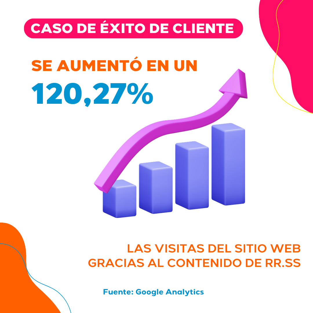 Por otra parte, debemos destacar el éxito que han tenido nuestros clientes al confiar en las estrategias y tácticas propuestas por nuestra parte. Es por esto, que también queremos recalcar el aumento de tráfico de las redes sociales de nuestros clientes hacía sus sitios web o eCommerce. En el período de un año, hubo un incremento del 120,25% de tráfico desde las redes sociales hacía el landing page.