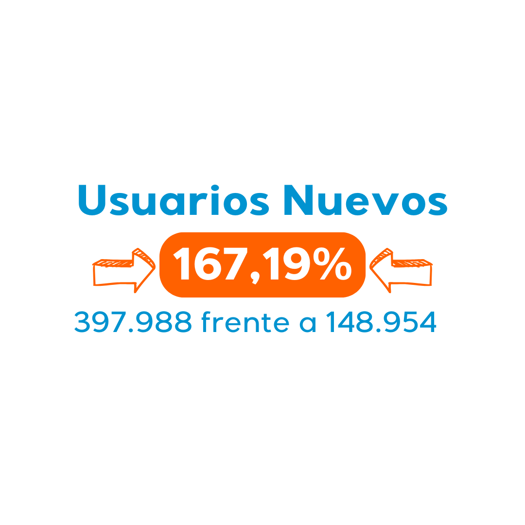 No solo aumentamos el tráfico en el sitio web, sino que también subimos los números de NUEVOS usuarios que visitaron el eCommerce y sitio web de nuestros clientes. En el año 2021 se obtuvieron 148.954 usuarios, pero con nuestras estrategias y tácticas, en 2022 pudimos captar a 397.988 usuarios nuevos. Es decir, si hablamos de porcentajes, pudimos aumentar en un 167,19% en nuevos usuarios en los eCommerce de nuestros clientes.